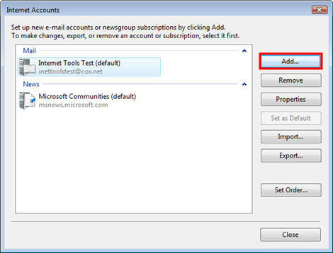 10. Go back to Accounts, select the account you just set up and click Properties.